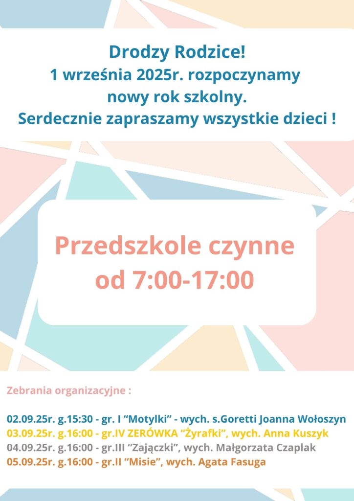 Rozpoczęcie nowego roku szkolengo 2025-08-272025-08-27| 18:02 Categories: Aktualności Leave a Reply Anuluj pisanie odpowiedziTwój adres e-mail nie zostanie opublikowany. Wymagane pola są oznaczone *Komentarz * Nazwa * Adres e-mail * Witryna internetowa Zapamiętaj moje dane w tej przeglądarce podczas pisania kolejnych komentarzy. Nawigacja wpisu PREVIOUS Previous post: WOLNE MIEJSCANEXT Next post: Przyjmujemy dzieci od 2,5 do 6 lat !!! Related Post Wakacje !Wakacje ! Zobacz więcej...Zobacz więcej... RekrutacjaRekrutacja Zobacz więcej...Zobacz więcej... KLAUZULA INFORMACYJNAKLAUZULA INFORMACYJNA Zobacz więcej...Zobacz więcej...